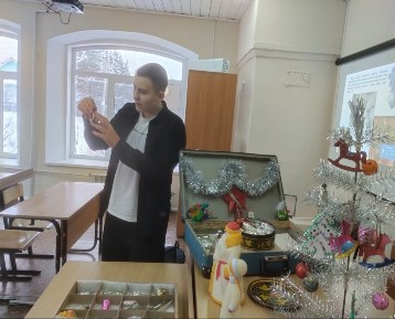 Могут ли ёлочные украшения, быть вещественным источником при изучении истории нашей страны? Вот об этом и рассказала ребятам очередная экскурсия «Музей в чемодане».
