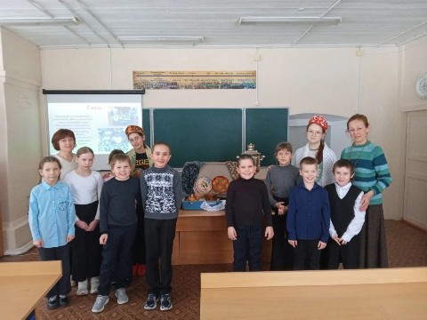 Проект «Музей в чемодане». Активистами школьного музея «Вечные родники» под руководством учителя истории Протасовой Р.М. было подготовлено и проведено очередное музейное занятие «Народные промыслы России» для обучающихся 1-4 класса.